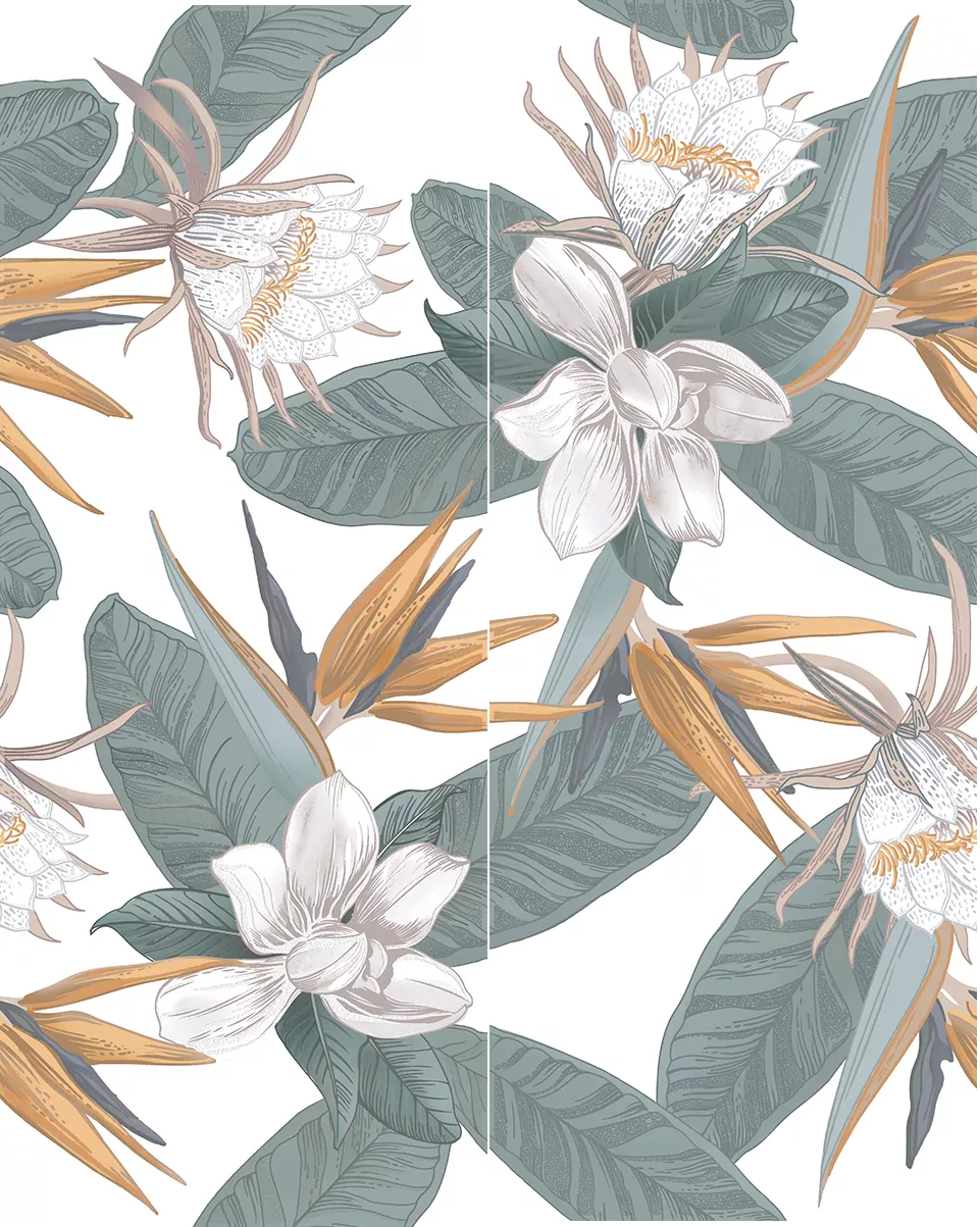 Панно Azori Calacatta Ivori Strelitzia, 40.2x50.5, флора, мультиколор, матовое